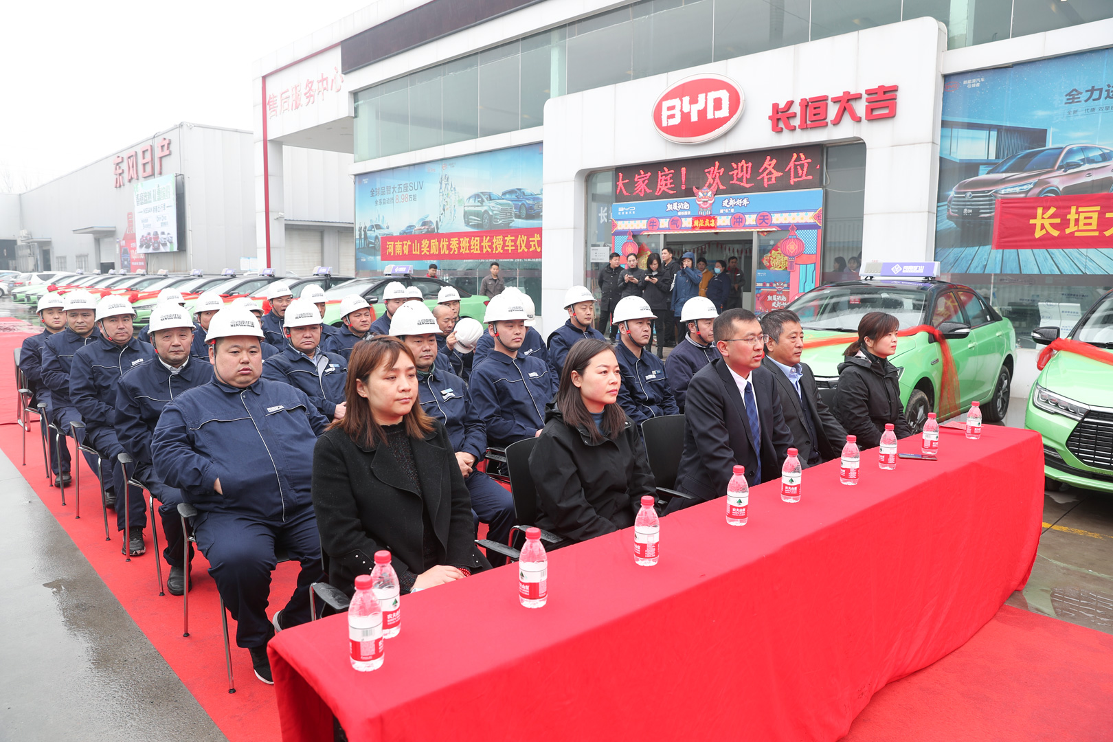 3月11日,河南礦山獎(jiǎng)勵(lì)班組長授車儀式在長垣大地亞飛汽車城內(nèi)隆重舉行。公司24名一線員工得以重獎(jiǎng),每人獲得一輛純電動比亞迪全新秦EV。據(jù)悉,該批車市場總價(jià)值420余萬元。
