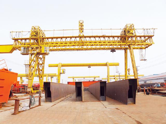 該門式起重機(jī)其主要用于橋梁建設(shè),工作速度慢,由門架、卷?yè)P(yáng)機(jī)小車、大車運(yùn)行機(jī)構(gòu)、司機(jī)室和電氣控制系統(tǒng)組成。